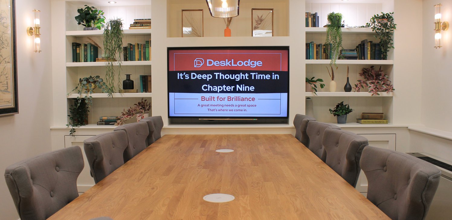 Big ideas start in Chapter Nine, A bright, spacious room built for big ideas, bold plans, and the next chapter in your story. With unlimited tea and bean-to-cup coffee, superfast WiFi, and flexible bookings, itβs built for strategy sessions, team workshops, and moments that matter.