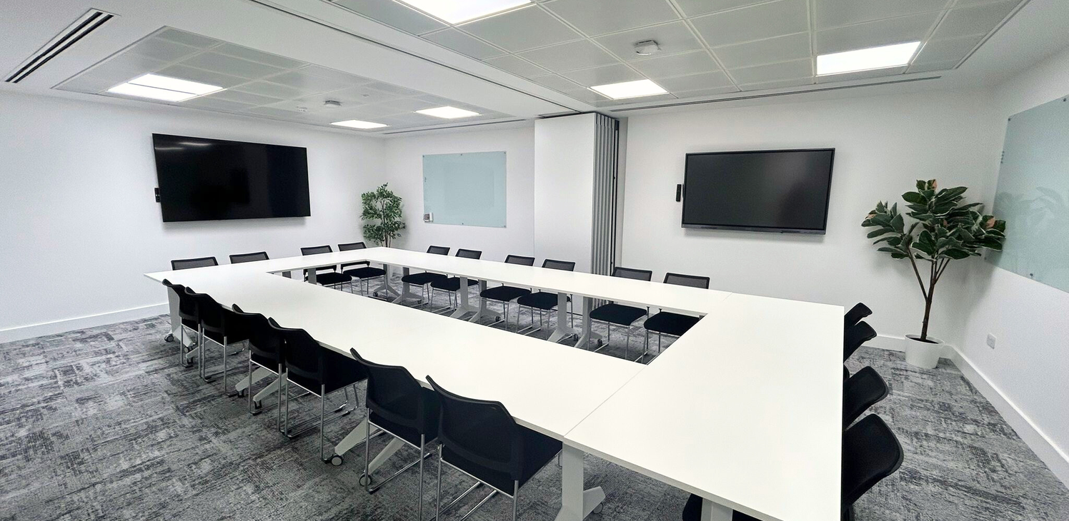 Our large meeting room offers a flexible layout and can be arranged in boardroom, classroom, or theatre style to suit your needs. Located on the lower ground floor of our modern Success Lounge, the space is ideal for team meetings, presentations, or workshops with fast Wi-Fi for a seamless experience.