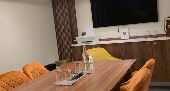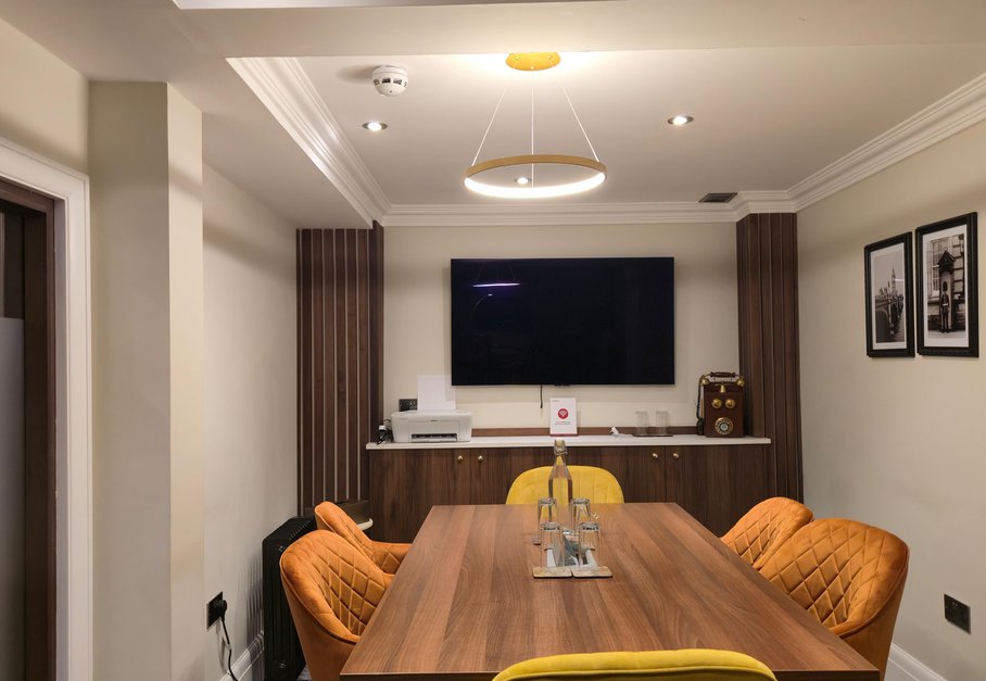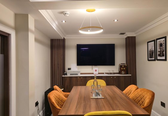 Welcome to our versatile meeting room at 124 Middlesex Street, London E1 7HY, where modern design meets functionality. Perfect for business meetings, workshops, or brainstorming sessions, this space is thoughtfully equipped to meet all your needs. Enjoy high-speed WiFi, a large TV for seamless presentations, and privacy glass that ensures your discussions remain confidential. We've also provided convenient on-site toilets to enhance your comfort during your event. Located just a 2-minute walk from Liverpool Street Station and near the vibrant Spitalfields Market, our meeting room is both accessible and surrounded by some of London’s best amenities. We take pride in maintaining a clean, luxurious environment so you can focus on what matte
