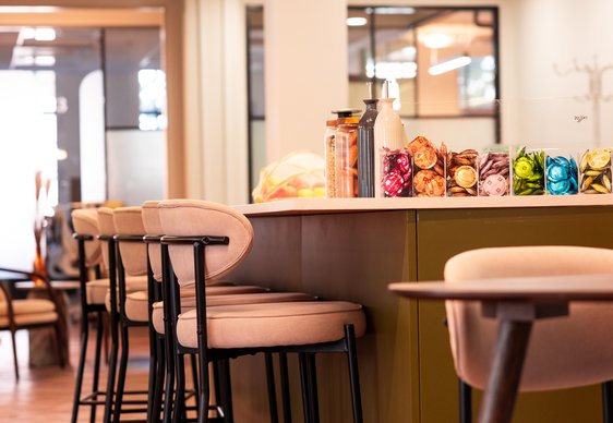 Co-working day space bookings will be situated in the communal lounge spaces which include a mixture of soft seating, chairs and shared tables
