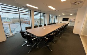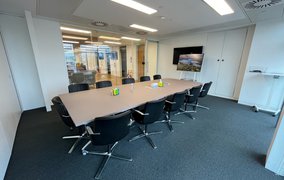 In a welcoming and friendly environment, the meeting rooms are designed to accommodate individuals comfortably. Featuring a large rectangular table, with comfortable leather chairs in a contemporary environment with glass walls, and views across London. The room is equipped with a large flat-screen TV, perfect for presentations. This is an ideal space for productive and inspiring
